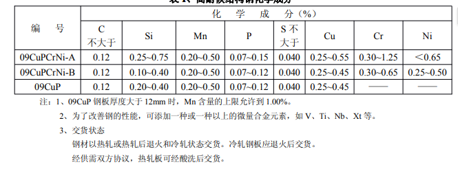 耐候鋼之高耐候結構鋼化學成分及力學性能