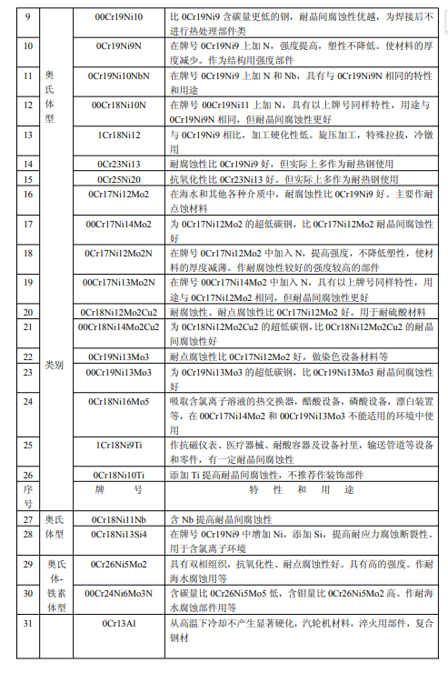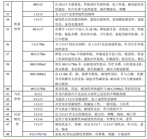 2、不銹鋼的特性和用途(參考件)
